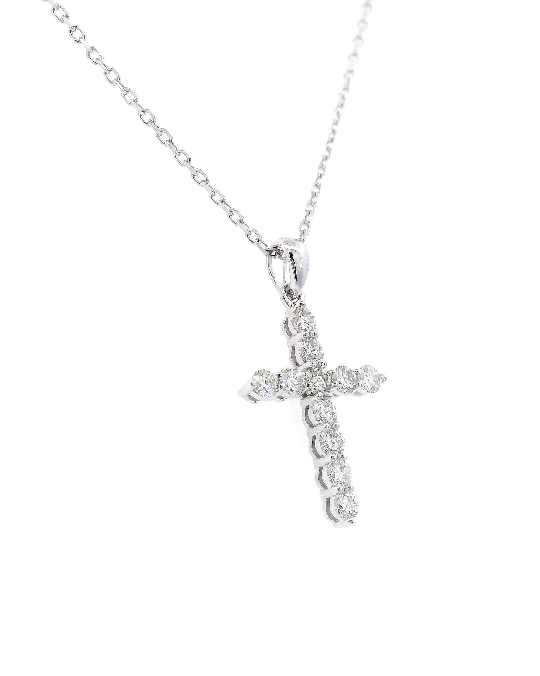 This Cross Pendant features 0.42 Carat Total Diamond Weight Round Brilliant Natural Diamonds E/F SI+, in a 18K White Gold setting.