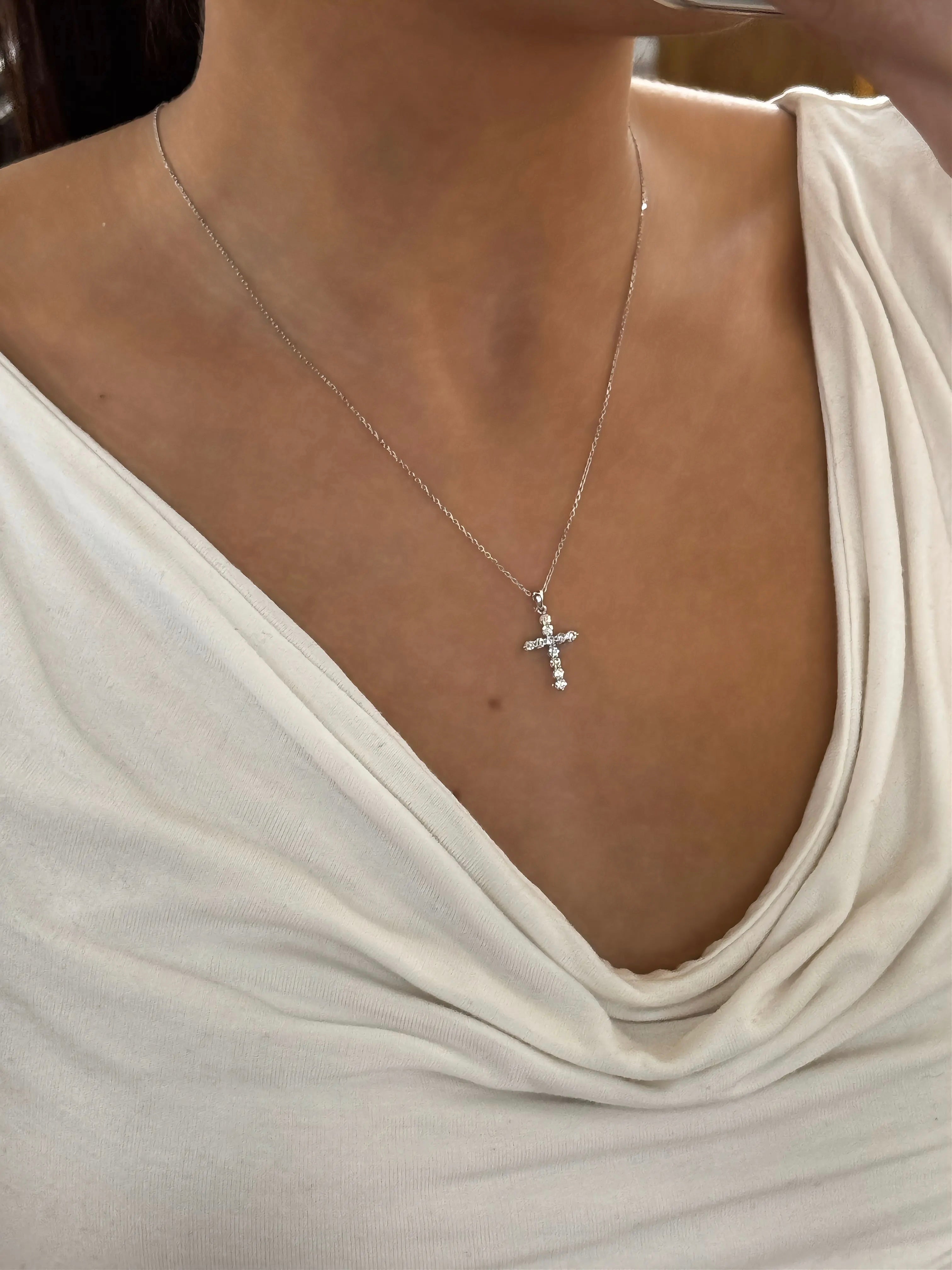 0.42Ct Natural Diamond Claw Set Cross Pendant
