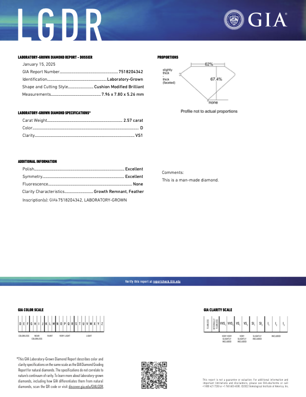 All of our diamonds are certified: