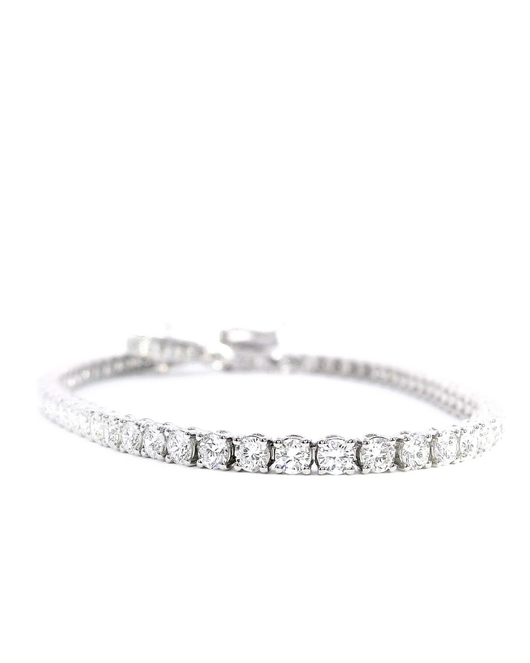 This Tennis Bracelet features 4.04Ct Total Diamond Weight E/F VS+ Round Brilliant Cut Classic Set Lab-Grown Diamonds in 18K White Gold.