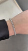 This Diamond Tennis Bracelet features 4.70 Carat Total Diamond Weight E/F SI1+ Round Brilliant Cut Crown Set Natural Diamonds, in 18K White Gold.